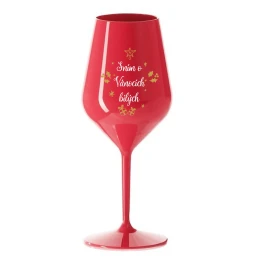 SNÍM O VÁNOCÍCH BÍLÝCH - červená nerozbitná sklenice na víno 470 ml