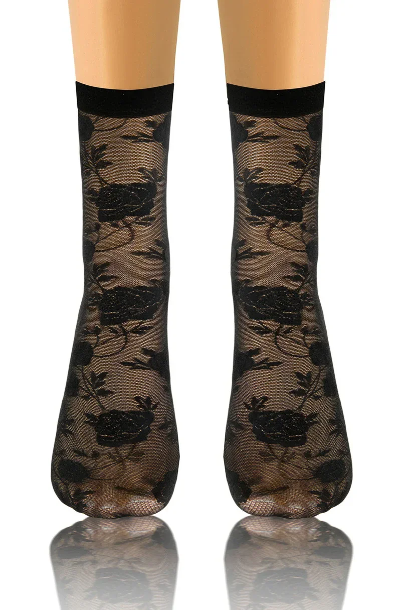 Přidejte svému outfitu romantický nádech s elegantními ponožkami WZ 10 od značky Sesto Senso. Jsou vyrobeny z průhledné síťoviny, zdobené bohatým květinovým vzorem v róg, působí mimořádně žensky a nápadně. Černá povrchová úprava v podobě hladkého lemu zajišťuje stabilitu a pohodlí při nošení, zatímco díky vysokému obsahu polyamidu jsou ponožky odolné a dokonale přiléhají k noze. Jsou ideální volbou pro každodenní nošení, do práce i pro zvláštní příležitosti.