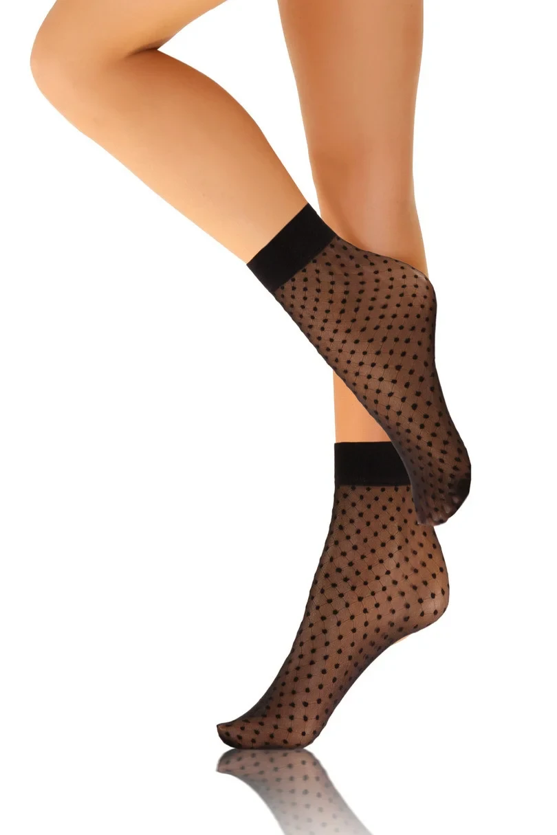 Ponožky WZ 12 od Sesto Senso jsou minimalistickou elegancí, která nikdy nevyjde z módy. Díky průhledné síťovině s jemným, rovnoměrným vzorem černých puntíků se tento model hodí jak ke každodennímu oblečení, tak k formálnějším outfitům. Hladký, černý lem zaručuje pohodlné nošení a perfektní přilnutí k noze. Díky použití vysoce kvalitních materiálů jsou ponožky lehké, pružné a velmi pohodlné.