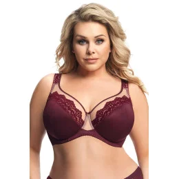 Senzační, velmi pohodlná podprsenka Luisse K441 v nové elegantní vínové barvě. Měkký typ, s kosticemi. Ideální pro střední a větší prsa. Velmi pěkně zdobí tělo, zejména díky jemné krajce v duetu s lehkým tylem. Velkou výhodou podprsenky jsou prodloužená ramínka, která zajišťují pohodlí při nošení. Jejich šířka závisí na velikosti. Díky tomu jsou prsa dokonale shrnutá dovnitř, zvednutá a udržují si krásný, zaoblený tvar.