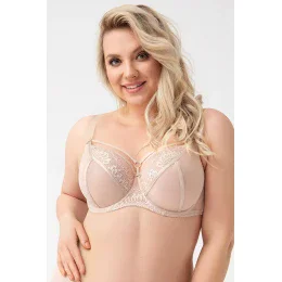 Sexy a velmi pohodlná měkká podprsenka. Horní část košíčků je vyrobena z tylu a krásné jemné krajky a je zakončena hladkou elastickou gumičkou. Spodní část košíčků je vyrobena z dvojitého tylu. Střed podprsenky, těsně přiléhající k mostu, je zdoben mašlí. Nad košíčky je ozdoba v podobě jemných pásků. Použité suroviny a konstrukce zajišťují, že poprsí je dokonale shrnuto od boků ke středu a drží na svém místě. Košíčky jsou tvarované drátkem kolem prsou. Košíčky jsou tvarované pomocí drátku kolem prsou, což znamená, že prsa jsou dokonale shrnutá dovnitř, nadzvednutá a udržují si krásný, zaoblený tvar. Boky jsou u všech velikostí opatřeny svislými kosticemi, které zajišťují, že podprsenka zůstane na svém místě. Zadní část je vyrobena z elastické síťoviny. Ramínka: hladká, nastavitelná, neodnímatelná, různě široká v závislosti na velikosti, zdobená malou mašličkou na spojení s košíčkem. Zapínání: háček a očko, v závislosti na velikosti, dvouřadé nebo třířadé s třístupňovým nastavením obvodu. Konstrukce K101.