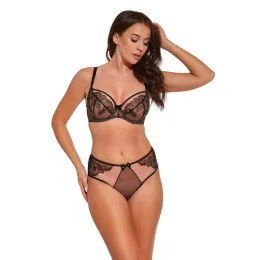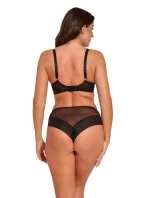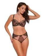 Krásný, zajímavý a moderní model měkké podprsenky Nike v béžové barvě. Košíčky jsou ušité z krajky jemné k pokožce v kombinaci s nepružným tylem. Vzor na prádle je velmi jemný a ženský a vytváří na těle krásný vzor. Senzační model na léto nemá žádné vycpávky a je velmi lehký. Obvod s bočními velrybími kosticemi, o něco méně pružný, se neprověšuje, váha poprsí na něm dobře spočívá. Košíčky profilované drátkem obepínajícím prsa, který drží poprsí na místě. Nízký střed, ideální pro velké výstřihy, dobře sedí na těle.