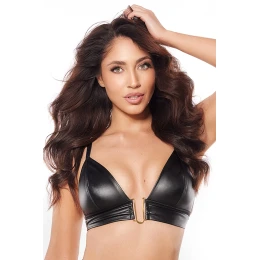 Fenomenální model, ve kterém budete připravena na každý večer, dokonalá měkká podprsenka z tenkého latexu, která se hodí pod večerní šaty i samostatně tvoří krásnou ozdobu poprsí. Černá podprsenka má nastavitelná ramínka a nevyztužený košíček, mezi nimiž je módní a svůdná kovová ozdoba ve tvaru písmene V. Model se zapíná na dvouřadové zapínání na háčky a očka, ostatní doplňky jsou ve zlaté barvě.