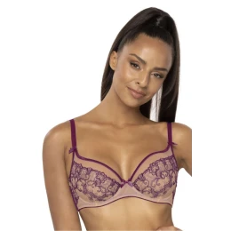 Podprsenka měkká béžovo-fialová Maureen M-3808/2 je charakterizována košíčky s korálkovou krajkou s kosticemi, které jsou podsazeny jemnou bavlnou uvnitř pro zajištění pohodlí. Nastavitelné ramínka jsou neodnímatelná a boční díly podprsenky jsou vyrobeny z pružné síťoviny bez bočních kostic, co zvyšuje pohodlí. Podprsenka je vybavena třístupňovým zapínáním na dva nebo tři háčky, umožňující ideální přizpůsobení obvodu pod prsy.