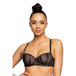 Dotssy ? vynikající balkonová podprsenka s měkkými košíčky v mimořádně ženském stylu. Model je vyroben z kombinace pevného stabilního tylu a stabilního tylu s půvabnými puntíky. Podprsenka pěkně shrnuje a nadnáší ňadra. Ramínka jsou nastavitelná, neodnímatelná. Podprsenka se zapíná na dvouřadové háčky s třístupňovým nastavením.