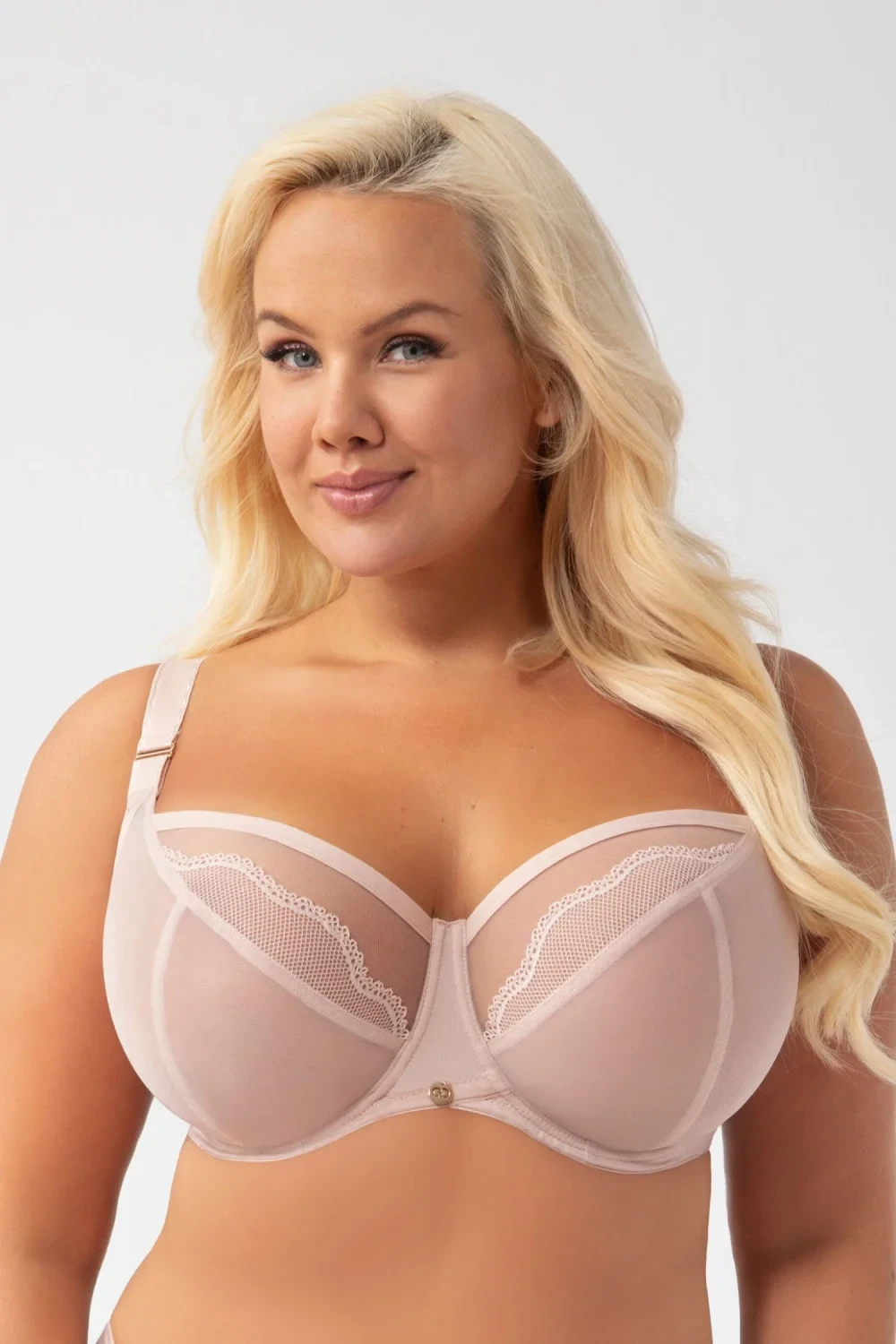 Elegantní a funkční soft podprsenka navržená s ohledem na ženy s větším poprsím. Hluboké a pohodlné košíčky bez zpevnění se dokonale přizpůsobují postavě, tvarují poprsí a sbírají ho z boků směrem ke středu dekoltu. Podprsenka je vybavena spodními a bočními kosticemi, které poskytují optimální podporu a stabilitu. Korzetové a síťové ozdoby mu dodávají jemnou eleganci, košíčky jsou lemovány lomenou páskou a díky technologii plochých švů zaručují maximální pohodlí při nošení. Nenápadné, nastavitelné ramínka a obvod umožňují ideální přizpůsobení postavě. Materiál rychleschnoucího materiálu z něj dělá praktickou a pohodlnou volbu na každý den. Ozdobné doplňky neobsahují nikl, co z něj činí bezpečný vůči pokožce. Podprsenka je dodávána v elegantní krabičce, skvělá jako dárek nebo jako výjimečný prvek každodenního prádla.