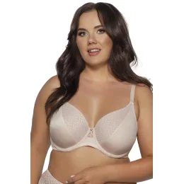 Tento měkký podprsenka je ideální kombinací pohodlí a funkčnosti, vytvořený s ohledem na ženy s plnějším poprsím. Hluboké, neztužené košíčky s dolními kosticemi dokonale podpírají prsa a jemně je tvarují. Speciální konstrukce efektivně sbírá prsa ze stran a směřuje je směrem k středu, krásně zdůrazňující výstřih. Model se zapínáním na zádech, s nastavitelným obvodem a neodnímatelnými, plně nastavitelnými ramínky, zaručuje ideální přizpůsobení postavě a maximální pohodlí po celý den. Mezi košíčky je umístěné jemné zdobení, které celku přidává něžný ženský šarm. Podprsenka je zabalená v elegantním boxu, skvělá volba jako dárek nebo jako spolehlivý prvek každodenního prádla.