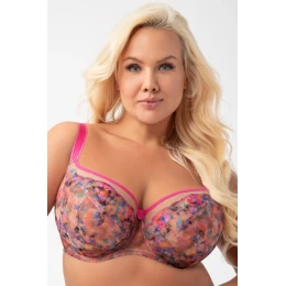 Měkký podprsenka Soft navržený s ohledem na potřeby větších prsů, poskytuje přirozený tvar a pohodlí bez zpevnění. Košíčky s dolními a bočními kosticemi účinně podpírají prsa a jemně je shromažďují z boků směrem ke středu dekoltu, zdůrazňujíce ženskou siluetu. Lemování stříhanou páskou a použití technologie plochých švů zajišťuje, že podprsenka není viditelná pod oblečením a je příjemná k pokožce. Model je vyroben z měkké, prodyšné látky, zdobený jemným vyšíváním a síťovými vložkami, které mu dodávají lehkost a eleganci. Nastavitelné, neodnímatelné ramínka a možnost nastavení obvodu umožňují ideální přizpůsobení. Všechny ozdobné doplňky jsou bez niklu. Podprsenka se zapíná na zádech, dodávána v estetické krabici, stylové a funkční řešení na každý den.