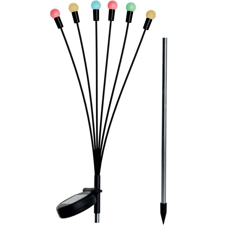 SOLÁRNÍ LAMPA TANČÍCÍ VE VĚTRU BAREVNÉ KOULE 6 LED 72CM
