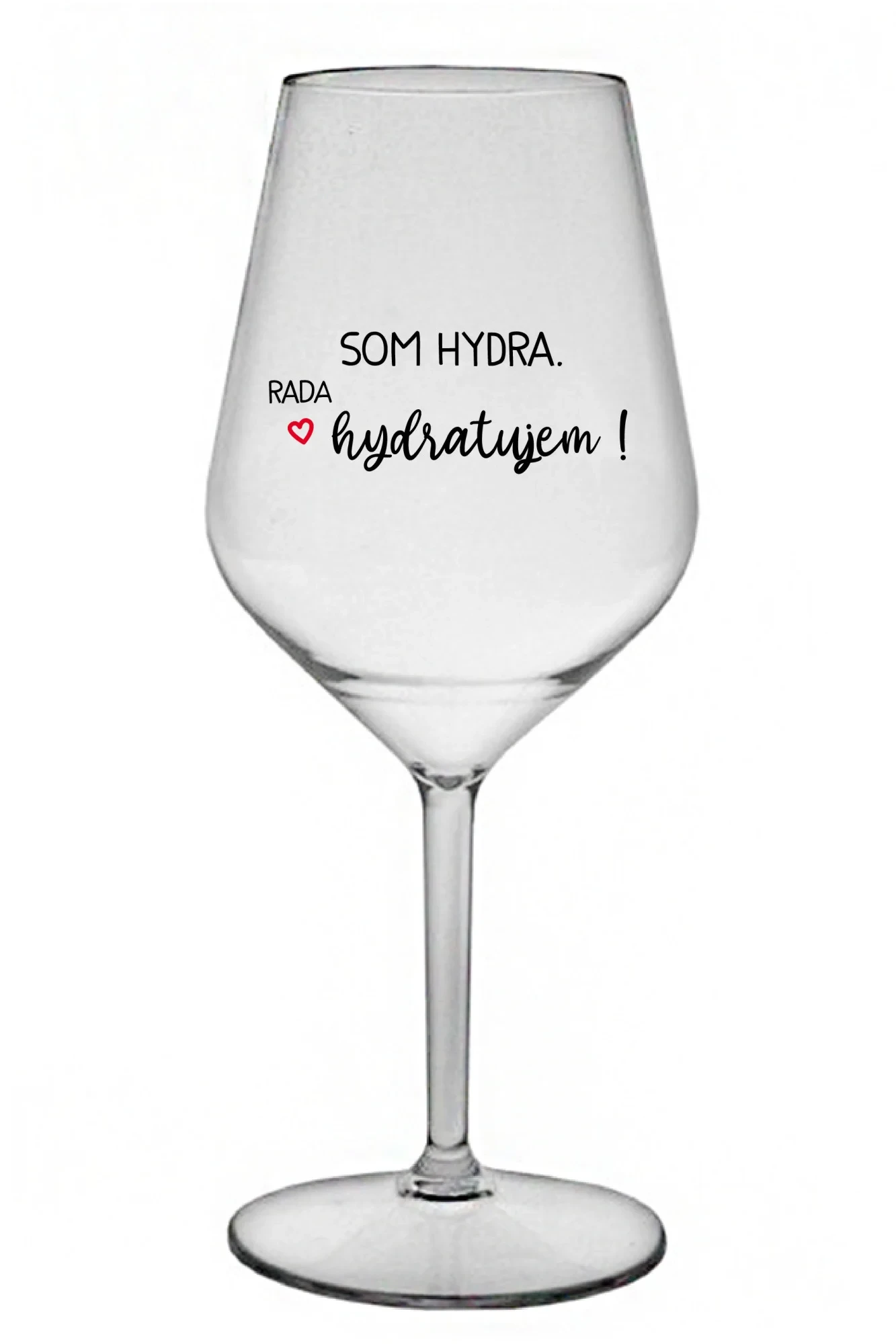SOM HYDRA. RADA HYDRATUJEM! - priehľadný nerozbitný pohár na víno 470 ml