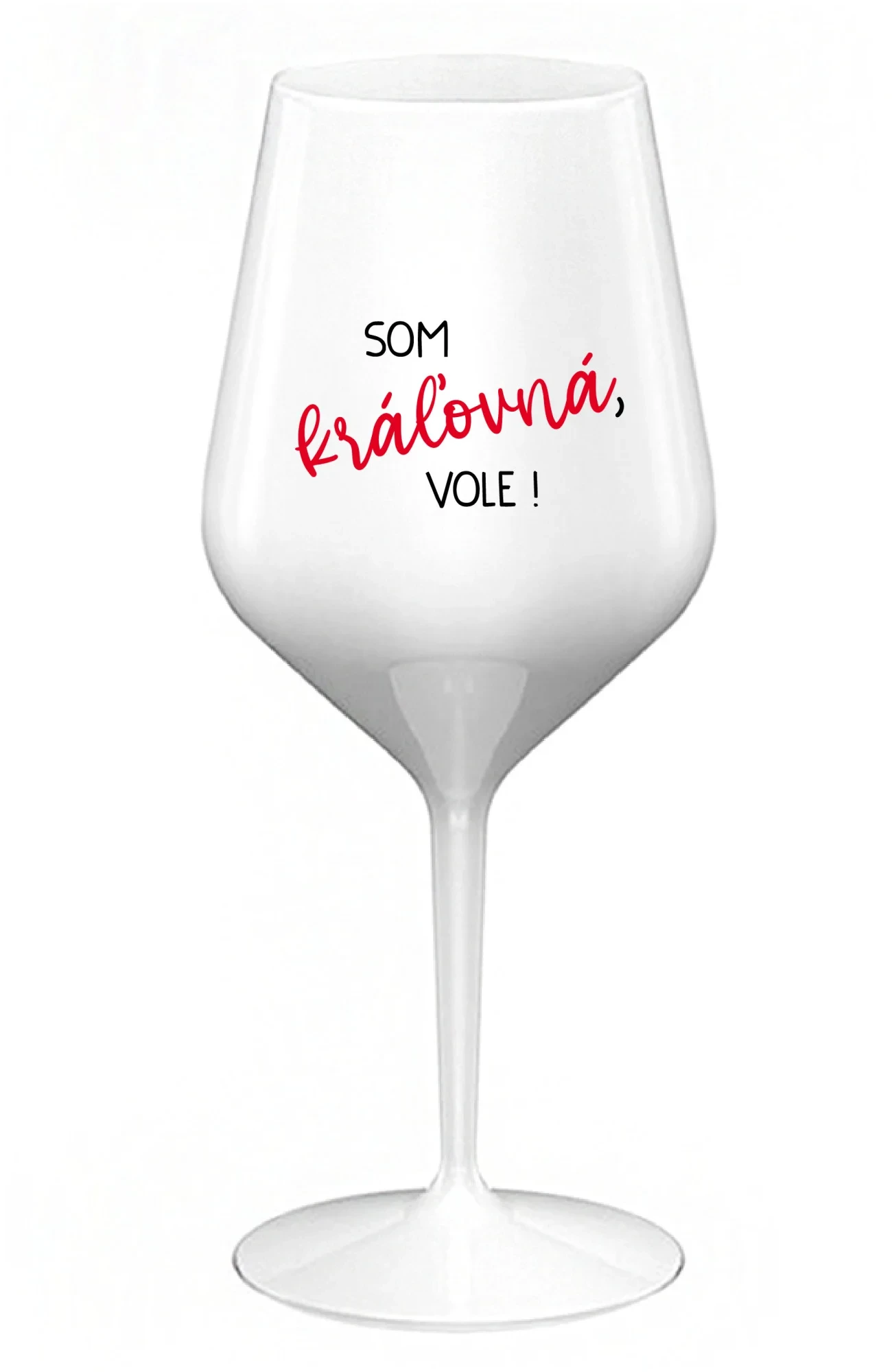 SOM KRÁĽOVNÁ, VOLE! - biely nerozbitný pohár na víno 470 ml