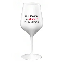 SOM KRÁSNA A SEXY! (A TIEŽ VTIPNÁ...) - biely nerozbitný pohár na víno 470 ml