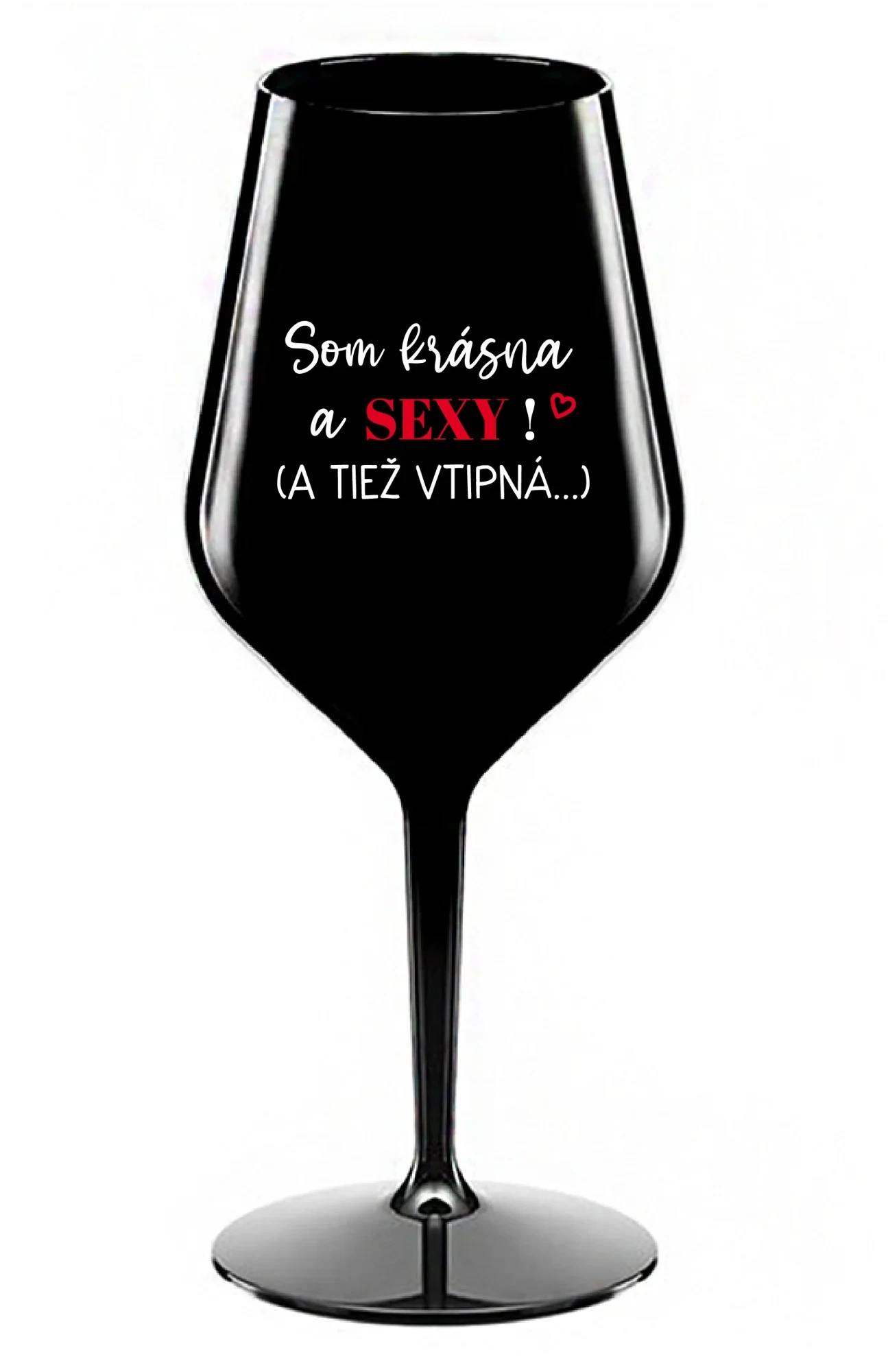 SOM KRÁSNA A SEXY! (A TIEŽ VTIPNÁ...) - čierny nerozbitný pohár na víno 470 ml