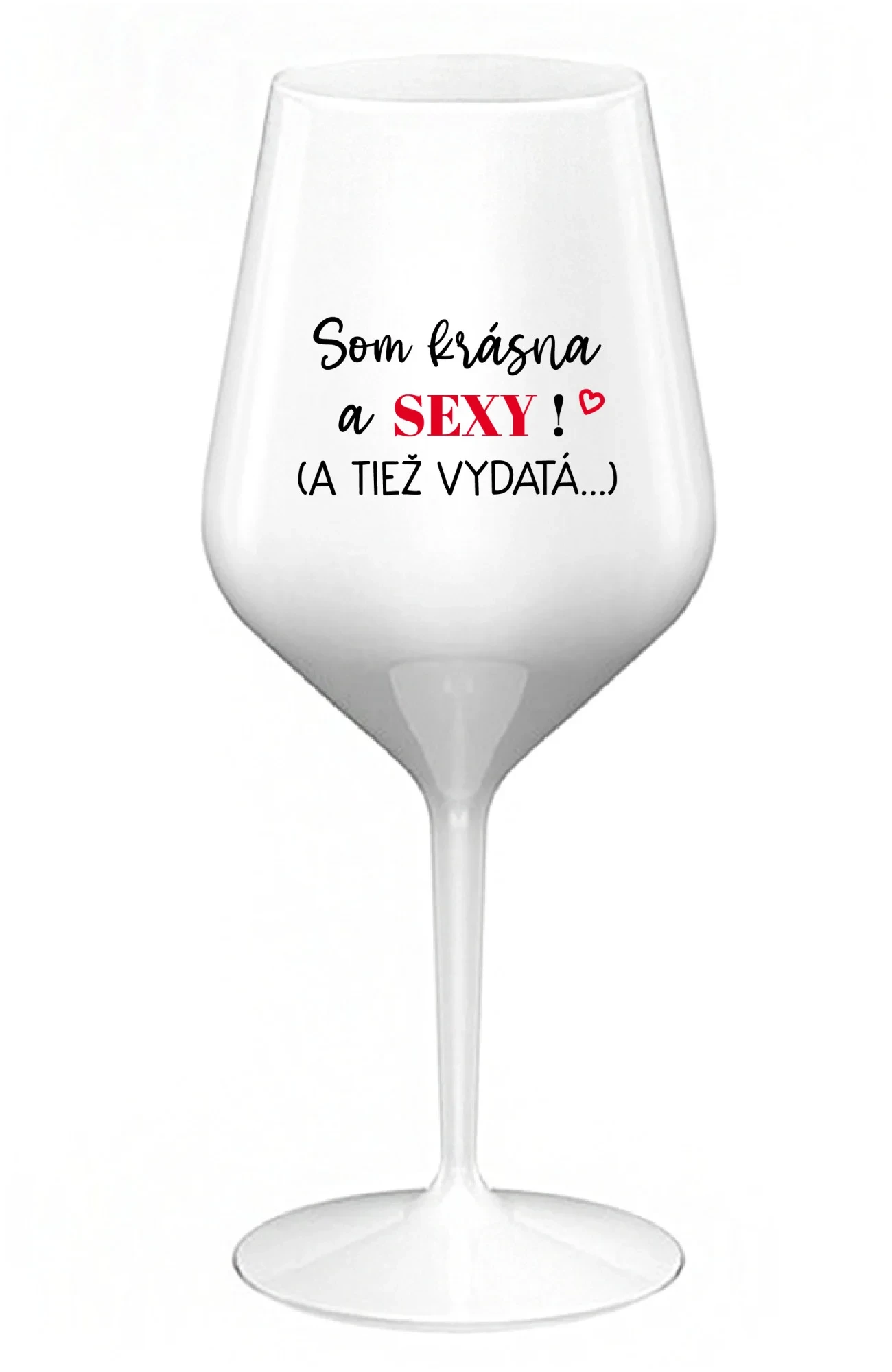 SOM KRÁSNA A SEXY! (A TIEŽ VYDATÁ...) - biely nerozbitný pohár na víno 470 ml