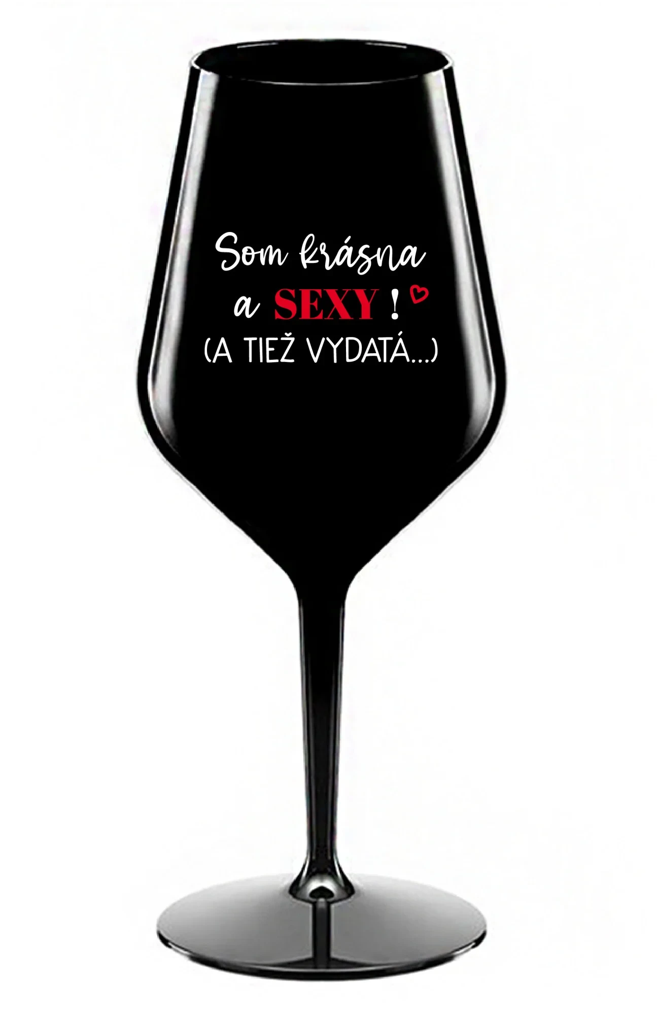 SOM KRÁSNA A SEXY! (A TIEŽ VYDATÁ...) - čierny nerozbitný pohár na víno 470 ml