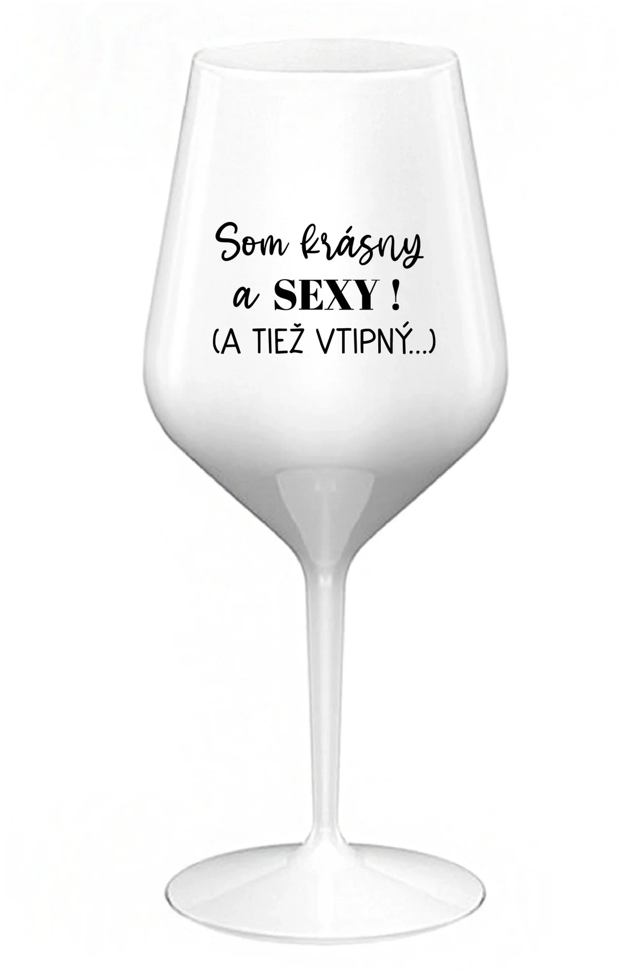 SOM KRÁSNY A SEXY! (A TIEŽ VTIPNÝ...) - biely nerozbitný pohár na víno 470 ml