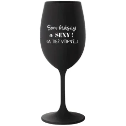SOM KRÁSNY A SEXY! (A TIEŽ VTIPNÝ...) - čierny pohár na víno 350 ml