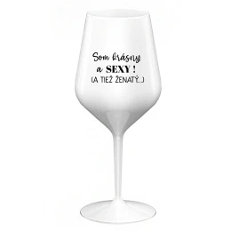 SOM KRÁSNY A SEXY! (A TIEŽ ŽENATÝ...) - biely nerozbitný pohár na víno 470 ml