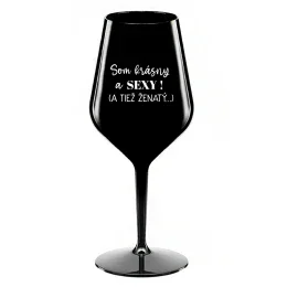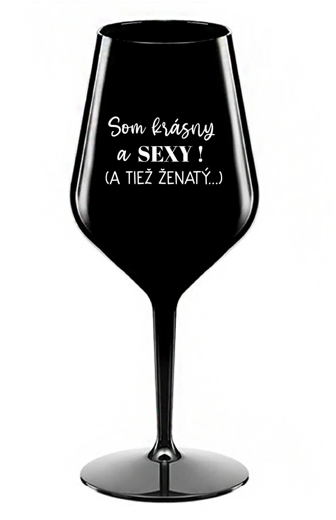 SOM KRÁSNY A SEXY! (A TIEŽ ŽENATÝ...) - čierny nerozbitný pohár na víno 470 ml