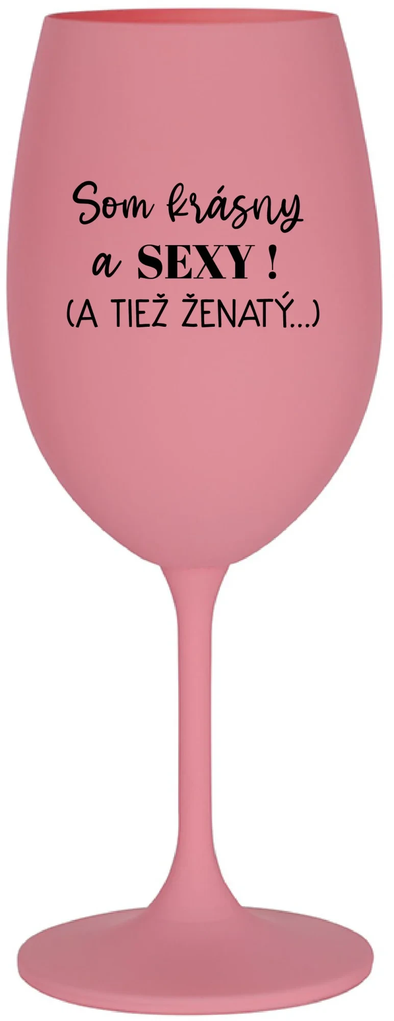 SOM KRÁSNY A SEXY! (A TIEŽ ŽENATÝ...) - ružový pohár na víno 350 ml