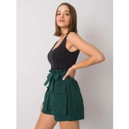 Tmavě zelené dámské šortky s páskem.