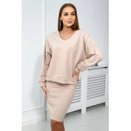 Kombinace halenky a šatů je ideální volbou pro ženy, které si rády vybírají z více možností. Lze je nosit společně a vytvořit tak stylový vzhled pro zvláštní příležitosti nebo samostatně pro vytvoření trochu ležérnějšího každodenního oblečení. Šaty jsou vyrobeny z žebrované tkaniny pro elegantní a módní vzhled. Šaty mají tenká ramínka. Sada je vyrobena s důrazem na detail. Souprava složená z halenky a žebrovaných šatů bez ramínek je skvělou volbou pro ženy, které hledají pohodlné, elegantní a módní oblečení. Určitě se bude hodit k nejrůznějším příležitostem a stylům a kvalitní zpracování zaručuje, že vydrží mnoho sezón. Velikost je univerzální a vyhovuje dámám velikosti S, M nebo L.