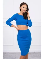 Představujeme vám sadu halenky se sukní. Halenka i sukně jsou vyrobeny z žebrované látky. Vypasovaná souprava dokonale zvýrazňuje postavu. Materiál je díky elastonu pružný. Sada je vyrobena z vysoce kvalitního materiálu. Velikost je univerzální a vyhovuje dámám velikosti XS, S nebo M.