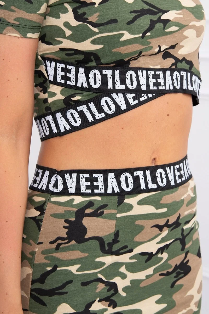 Představujeme vám sadu halenky se sukní. Na halence i sukni je stuha s nápisem Love. Sada s potiskem moro. Sada je vyrobena z vysoce kvalitního materiálu. Velikost je univerzální a vyhovuje dámám velikosti S, M nebo L.