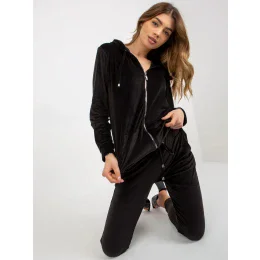 Černý dámský velurový komplet s kalhotami a mikinou .