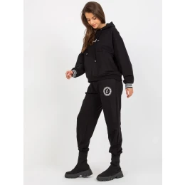 Černá mikinová souprava volného střihu s aplikací .
