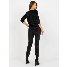 Černá dvoudílná velurová souprava s 3/4 rukávy .