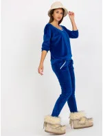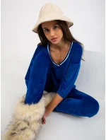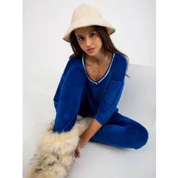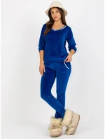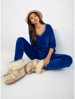 Kobaltová velurová souprava se srdíčkovým výstřihem .