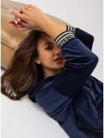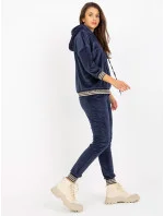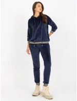 Dámský tmavě modrý velurový komplet s kalhotami .