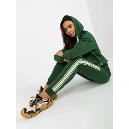 Tmavě zelený dámský ležérní komplet s výstřihem do V .