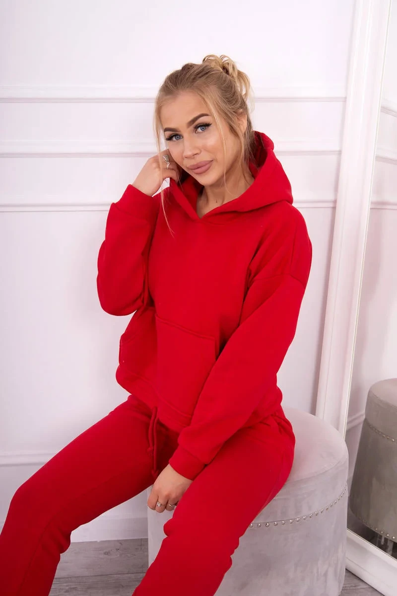 Souprava s fleecovou podšívkou a zavazováním na lemu červená