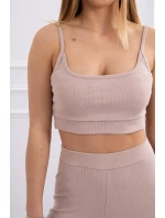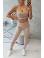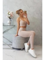 Souprava s halenkou s žebrováním béžová