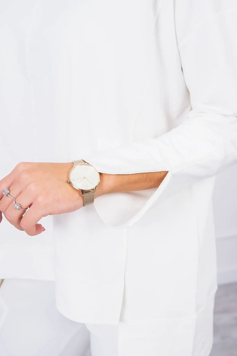 Představujeme vám sadu halenky a kalhot. Oversize halenka s rozparkem vpředu. . Sada je vyrobena z vysoce kvalitního materiálu. Velikost je univerzální a vyhovuje dámám velikosti S, M nebo L.