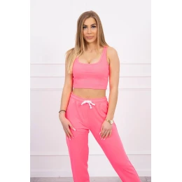 Prezentujemy Państwu komplet bluzki i spodni. Bluzka na ramiączka. Bluzka z prążkowanego materiału, spodnie gładkie. Komplet wykonany jest z wysokiej jakości materiału. Rozmiar jest uniwersalny i będzie odpowiedni dla Pań w rozmiarze S, M lub L.