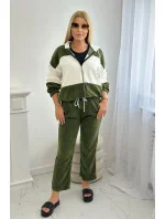 Souprava žebrovaného veluru mikina + kalhoty khaki