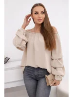 Španělská halenka s ozdobnými rukávy khaki