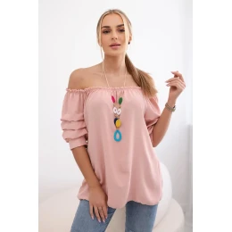 Španělská halenka s ozdobnými rukávy pudrově růžová