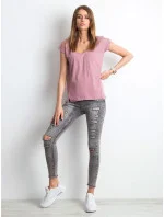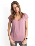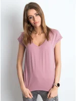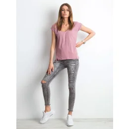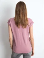Bavlněné dámské tričko t-shirt ve špinavě růžové barvě s ohrnutými rukávky Feel Good (4833-35)