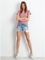 Tričko s výstřihem do V ve špinavě růžové barvě.