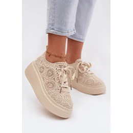Spletané dámské tenisky na platformě Béžové Evalora