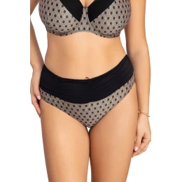 Spodní díl plavek 03414 Christina CORIN - černá barva - z vysoce jakostního mikrovlákna zdobeného zlatou nití - geometrický vzor - na pasu je nápis Corin ve zlaté barvě - horní část je černé barvy - prodlužuje pas