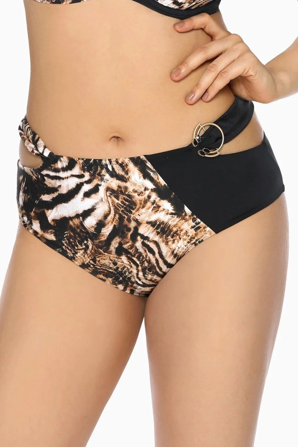 Spodní díl plavek 149/9 AVA - černá barva - se zvířecím motivem - z kvalitního mikrovlákna - vyšší pas