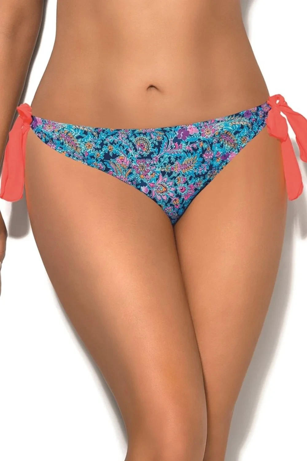 Spodní díl plavek 65/3 Meadow AVA - světle modrá barva - výrazný barevný vzor - klasický střih - po stranách mašličky - vyrobené z rychleschnoucího materiálu