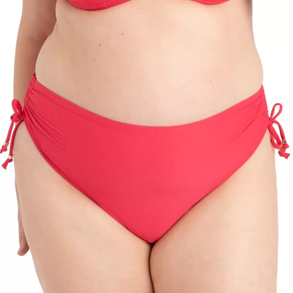 Spodní díl plavek Kaia B400 Samanta - červená barva - z kvalitního španělského mikrovlákna - vysoký pas - nastavitelné boky se zlatými detaily - certifikát Oeko-Tex STANDARD 100®