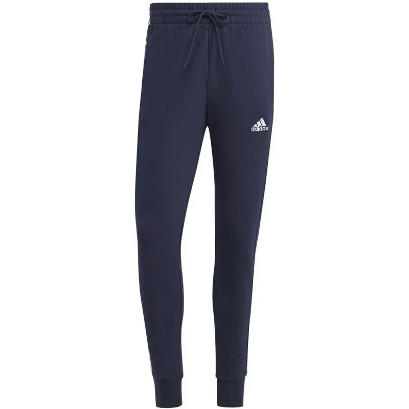 Pánské kalhoty adidas Essentials French Terry Tapered Cuff 3-Stripes navy blue IC9406