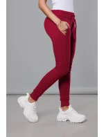Kalhoty mají středně vysoký sed a dvě kapsy. Model má pružný pas se šňůrkami. Zúžené nohavice lemují stahovací lemy.